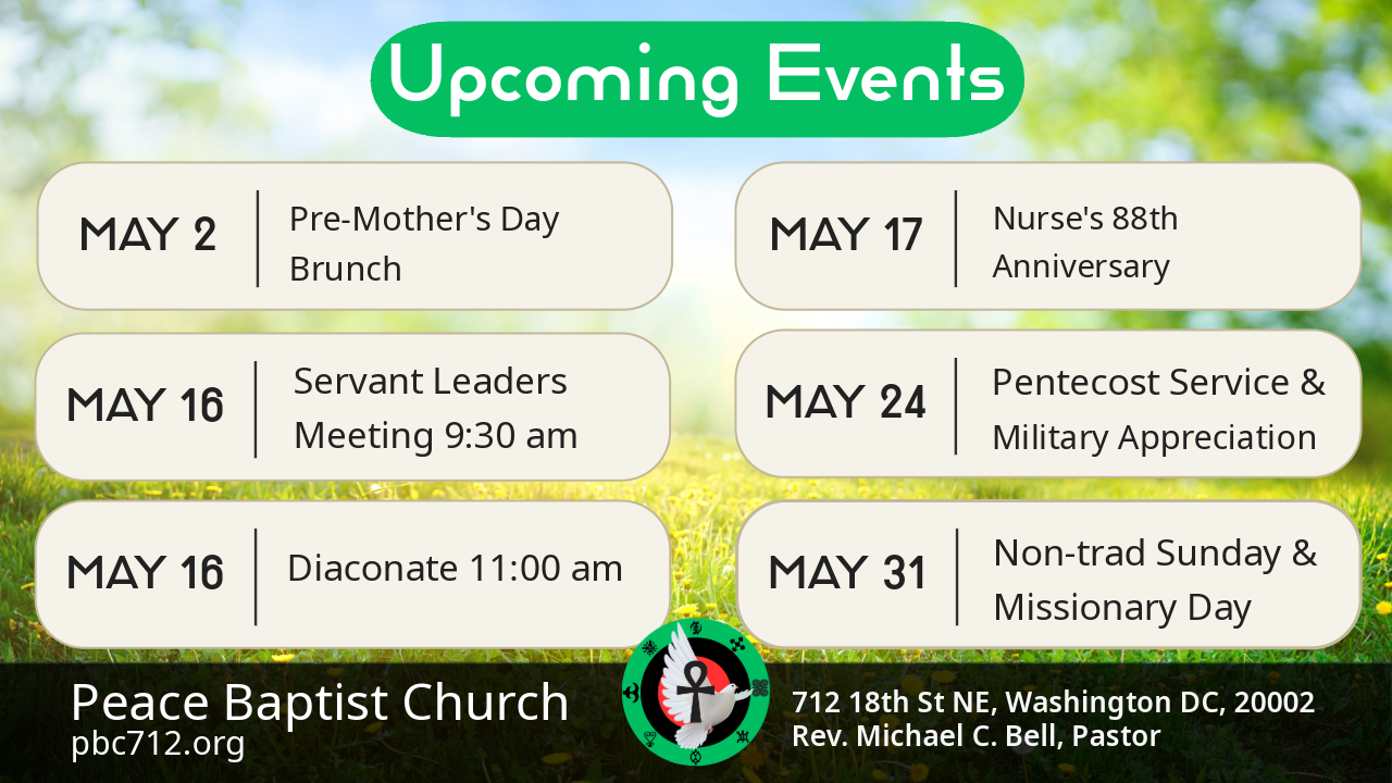We now have a Mobile App. Android phones Go to the Google Play Store and search for “Peace Baptist Church DC” Click here to get the app for Android Apple…